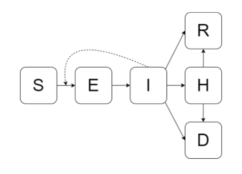 deathH_j: rate of flow from hospitalized to dead, -